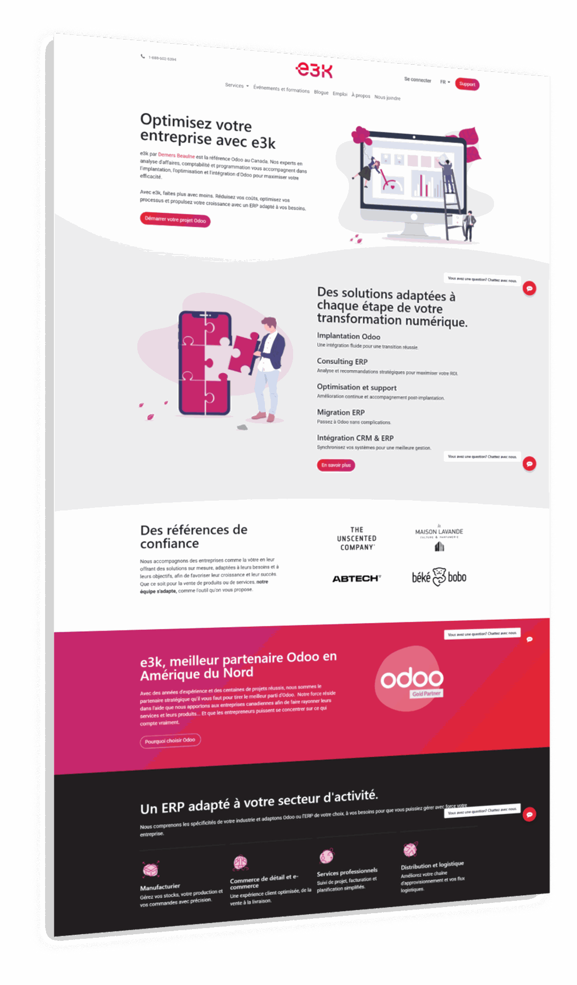 Need help creating your Odoo site? E3K supports you in designing, developing, and maintaining it.
